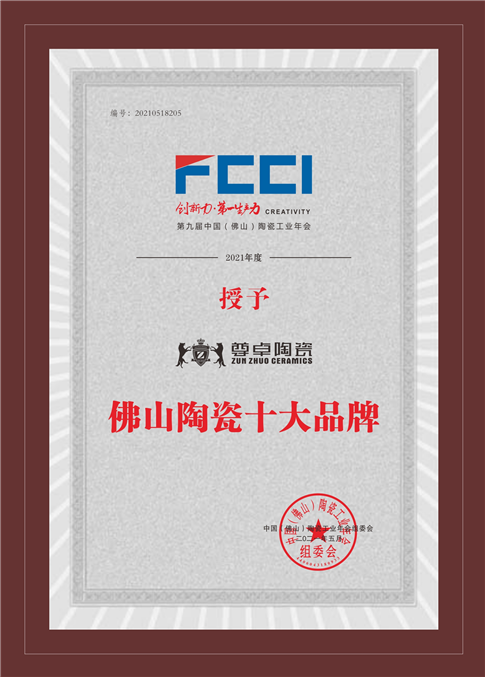 尊卓陶瓷憑借強(qiáng)大的品牌實(shí)力屢次得到業(yè)界和消費(fèi)者的肯定,連續(xù)5年入選“佛山陶瓷十大品牌”,穩(wěn)坐行業(yè)第一大隊(duì)列,為佛山陶瓷的金字招牌添彩增色,向中國(guó)傳遞“正宗佛山陶瓷”的品牌聲音。