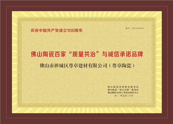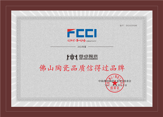 評(píng)選經(jīng)過層層嚴(yán)選和深度挖掘,公正的準(zhǔn)則極具行業(yè)權(quán)威性,尊卓陶瓷在眾多品牌角逐中脫穎而出,榮獲2021年度“佛山陶瓷十大品牌”“佛山陶瓷放心消費(fèi)品牌”“佛山陶瓷品質(zhì)信得過品牌”以及佛山陶瓷百家“質(zhì)量共治”與誠信承諾品牌四項(xiàng)大獎(jiǎng)。