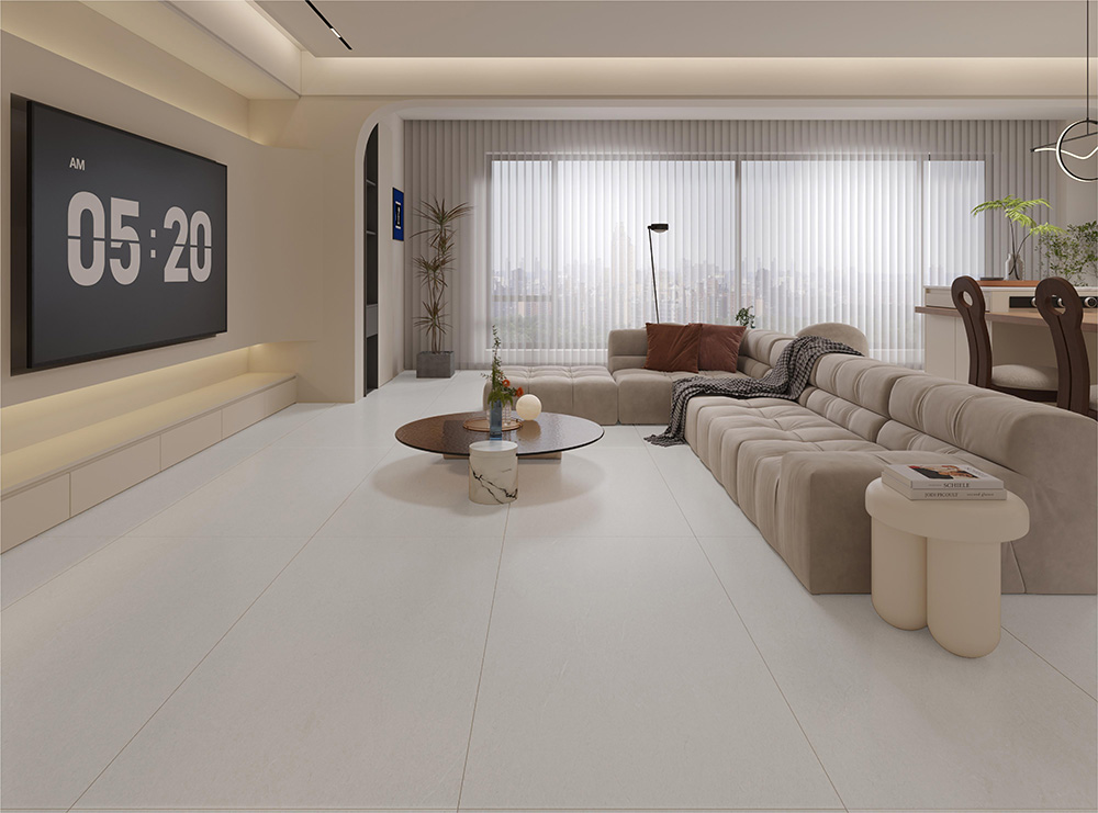 38度白巖板坯、10度柔光護眼、肌膚釉工藝、0.0X吸水率、高硬度、高耐磨、防滑、防污